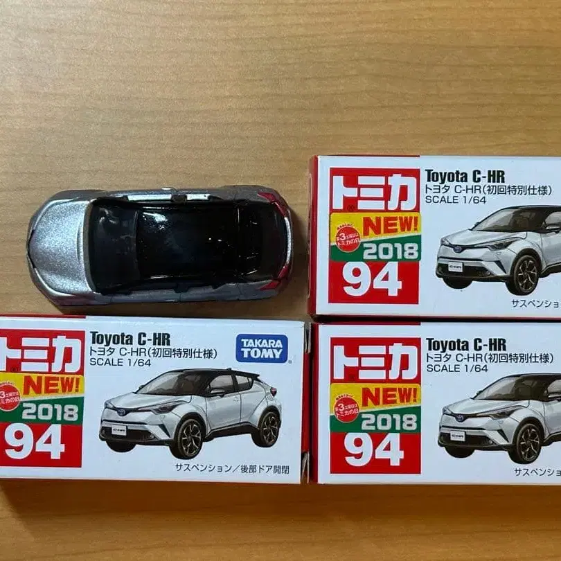 토미카 도요타 C-HR 4대 세트입니다. 일반 버전만 상자 없습니다. 낱개 판매 불가합니다. 내용은 아래와 같습니다. · 도요타 C-HR (초회 특별 사양) x 3 · 도요타 C-HR tomica toyota CHR
