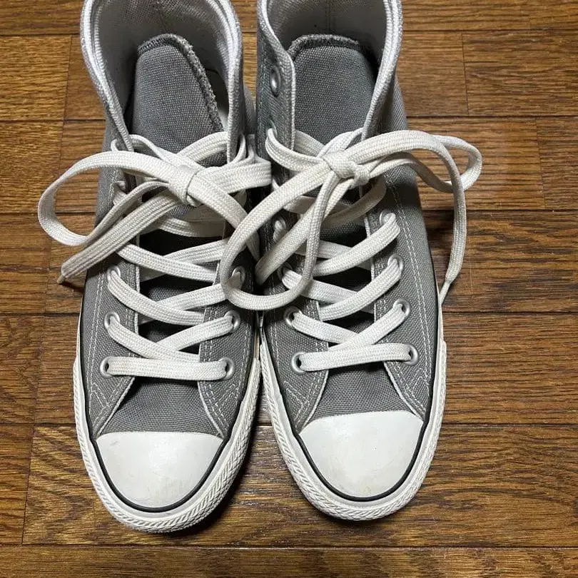 그레이 색상의 캔버스 소재를 사용한 CONVERSE 하이컷 스니커즈. - 브랜드: 척테일러 방문해 주셔서 감사합니다. 사이즈 - 23cm