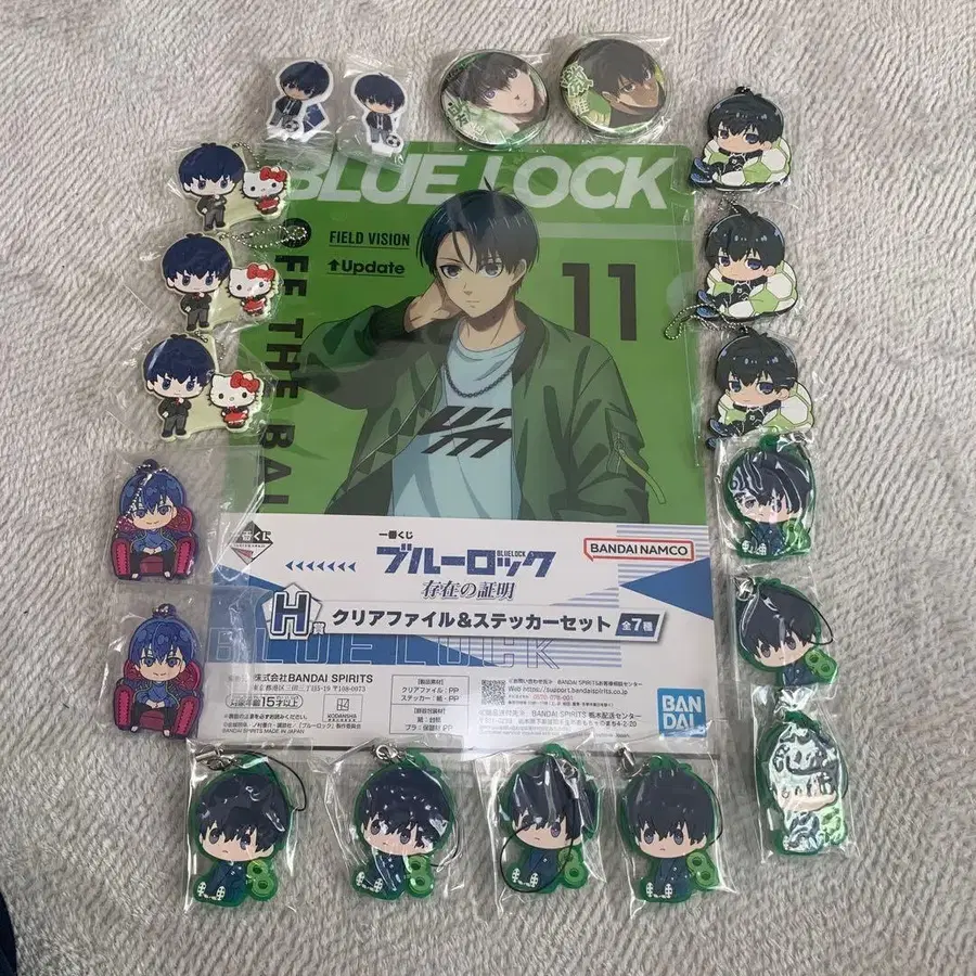 블루 록 캐릭터 키링과 클리어 파일 세트. - 세트 내용: 블루 록 캐릭터 키링, 클리어 파일, 스티커 - 캐릭터: 블루 록 캐릭터 - 수량: 총 16개의 키링 - 배지: 배지 2개와 피규어 2개 - 브랜드: 반다이 방문해 주셔서 감사합니다.