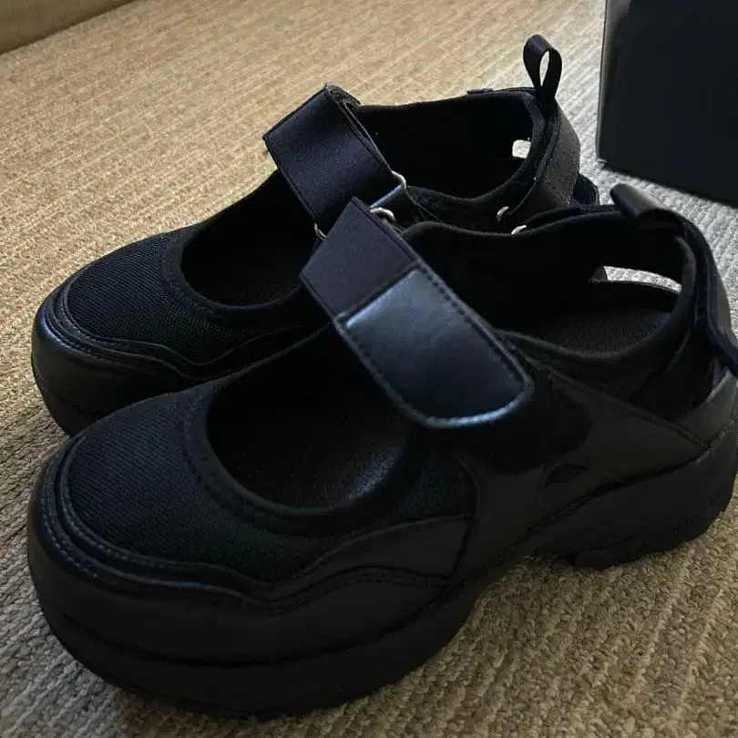 L.B.Evans의 블랙 스니커즈, 벨크로 테이프 부착으로 쾌적한 착용감. 통굽으로 아주 귀여워요.