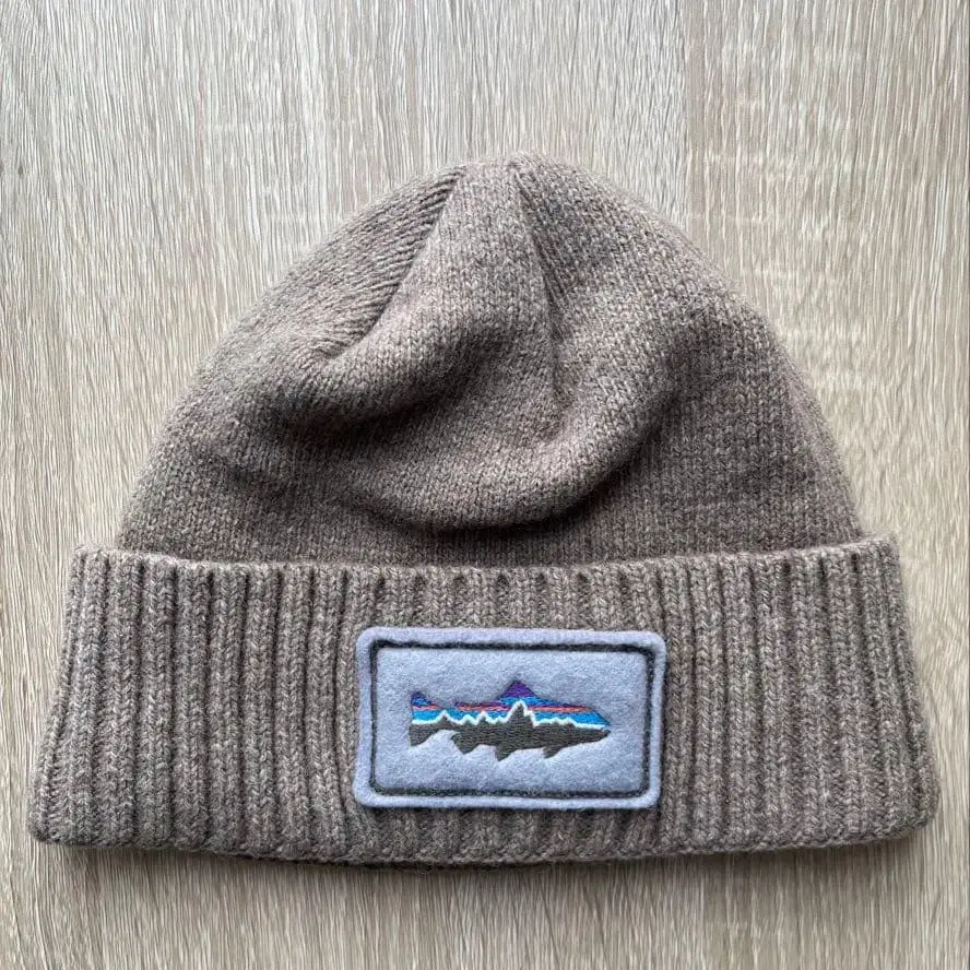 파타고니아 브라운 니트 모자 물고기 패치 포함