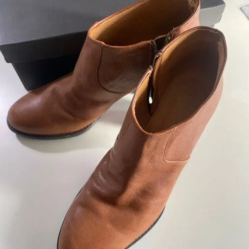 브라운 지퍼 부츠 힐 포함