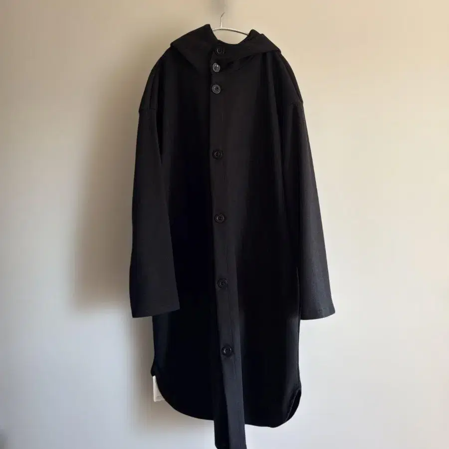 후드 부착 블랙 롱 코트 미사용 새상품
