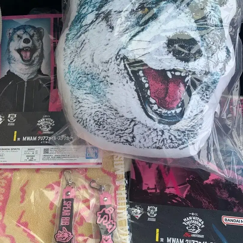 해당 상품은 MAN WITH A MISSION 15th ANNIVERSARY 제일복권 스페어 리브 4종 세트입니다.