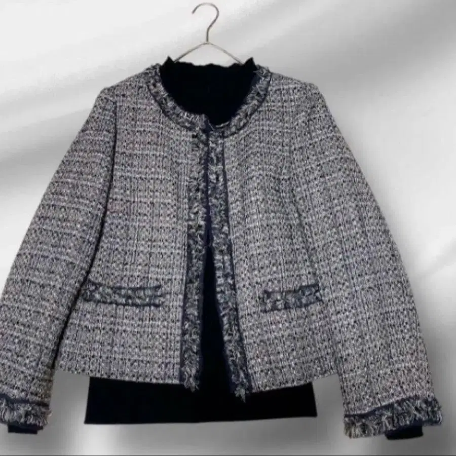 새상품급 도쿄 소와르 트위드 노카라 자켓 프린지 블랙 7호