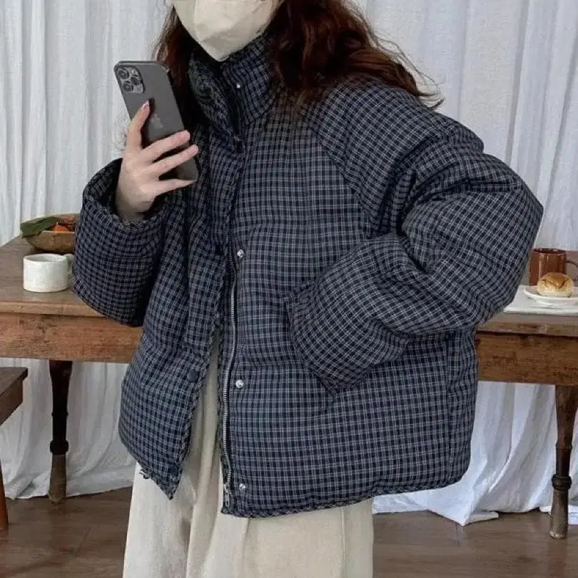 그레이 계열 체크 무늬의 넉넉한 다운 자켓, 단추식 디자인으로 쾌적한 착용감. - 색상: 그레이 계열 체크 - 스타일: 다운 자켓 - 소재: 폴리에스테르 - 디자인: 단추식 - 특징: 넉넉한 실루엣 방문해 주셔서 감사합니다. 색상 - 블루 계열 소재(겉감) - 폴리에스테르 얼룩, 찢김, 냄새 등 - 없음 소재(충전재) - 덕