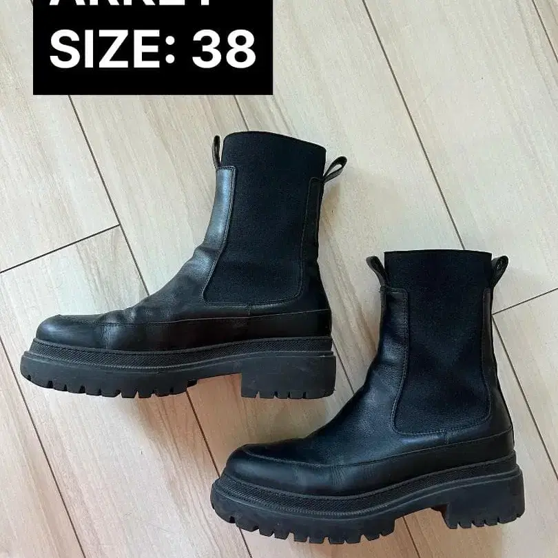 통굽 밑창의 블랙 사이드 고어 부츠. - 색상: 블랙 - 디자인: 사이드 고어 부츠 - 밑창: 통굽 밑창 - 소재: 가죽 방문해 주셔서 감사합니다. 색상 - 블랙 계열 소재 - 천연 가죽 얼룩, 찢김, 냄새 등 - 없음