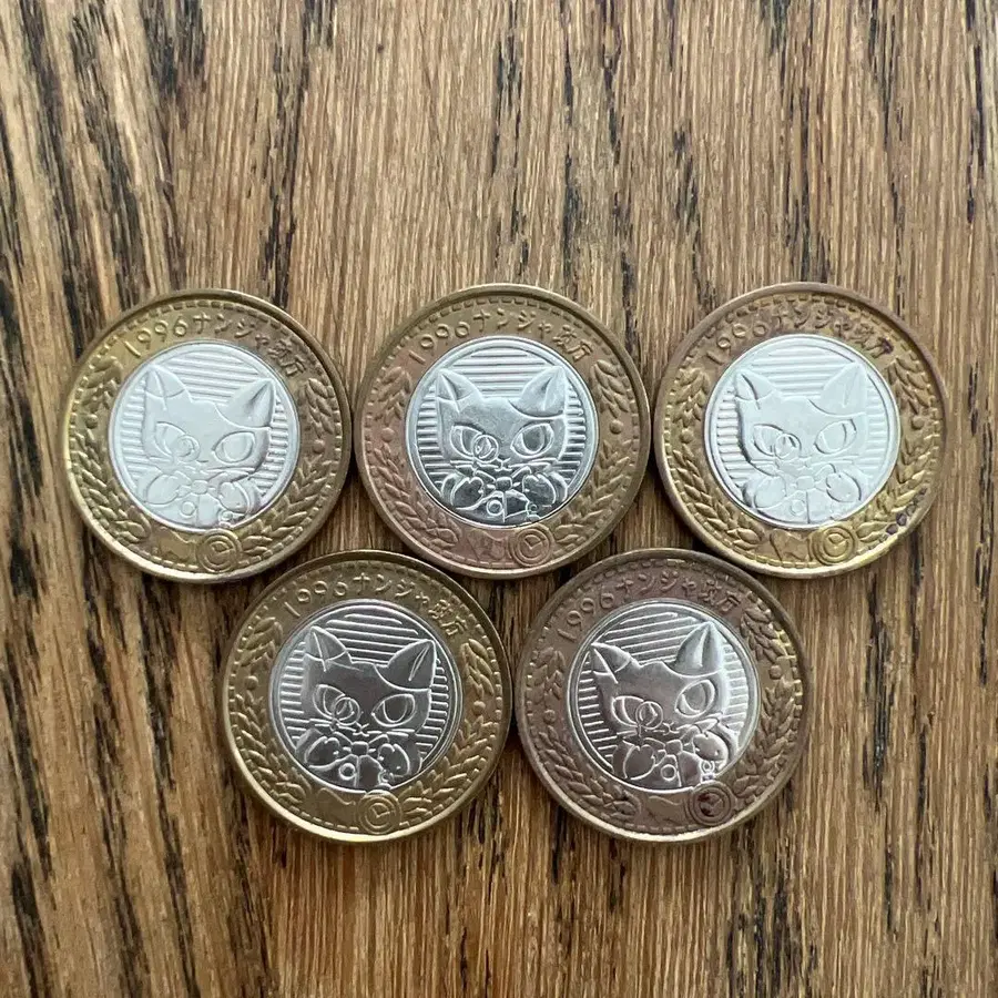도쿄 이케부쿠로에 있는 난자타운 내에서만 이용 가능한 난자 코인입니다. 5개 세트입니다. 1996년 당시에 발행하여 공원에서 사용하지 않고 집으로 가져왔습니다. 일부 녹이 있습니다. 현재도 사용할 수 있는지는 알 수 없습니다. 1996 난자 정청이라고 기재되어 있습니다. 컬렉션을 모으고 있는 분들에게도 추천합니다.