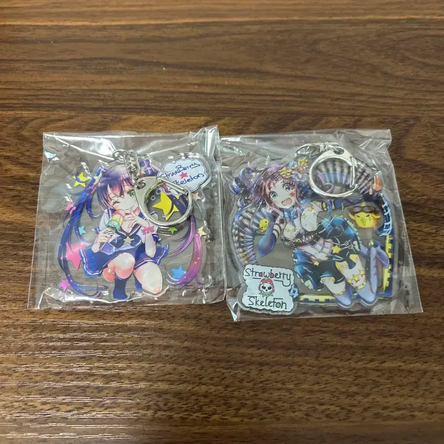 귀여운 디자인의 아크릴 키링 2개 세트.