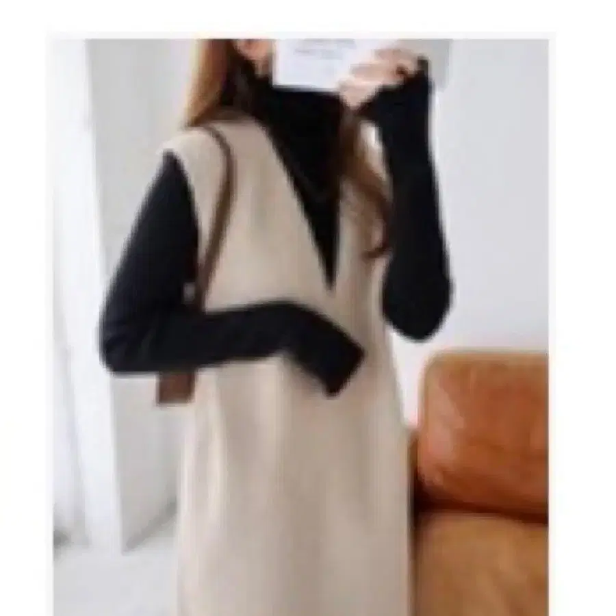(5) 르네 블랙 슬리브리스 무릎 기장 원피스 38