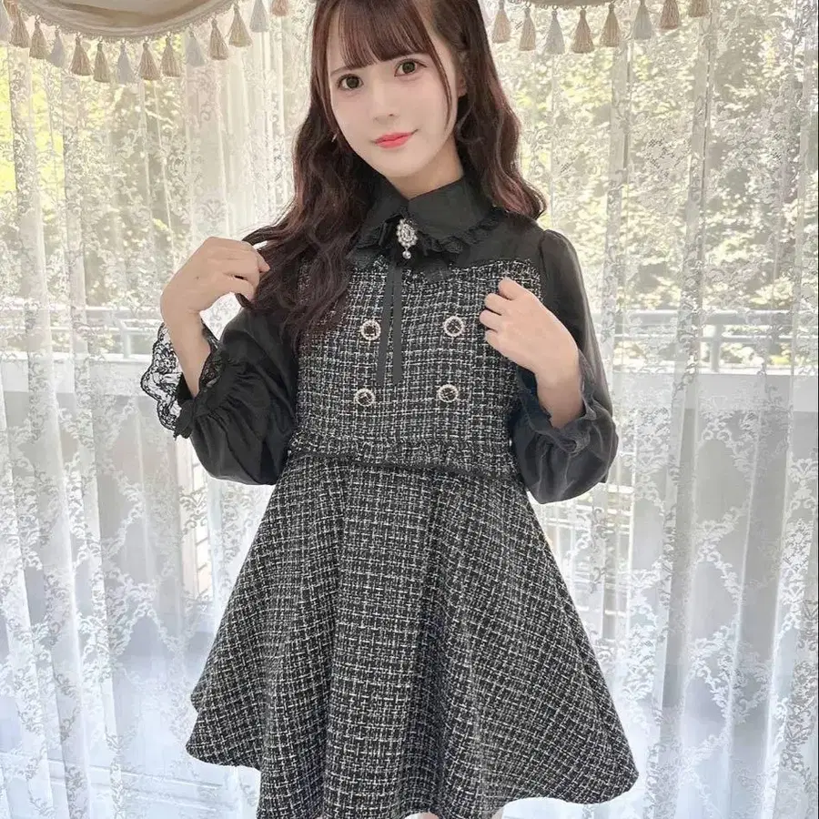 evelyn 비쥬 버튼 트위드 원피스 하라주쿠 한정판