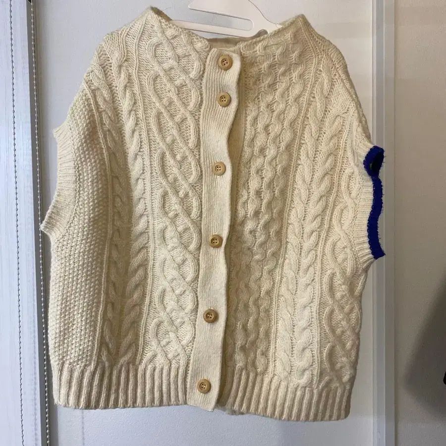nop de nod 아이보리 케이블 니트 베스트 왼쪽 소매 파랑