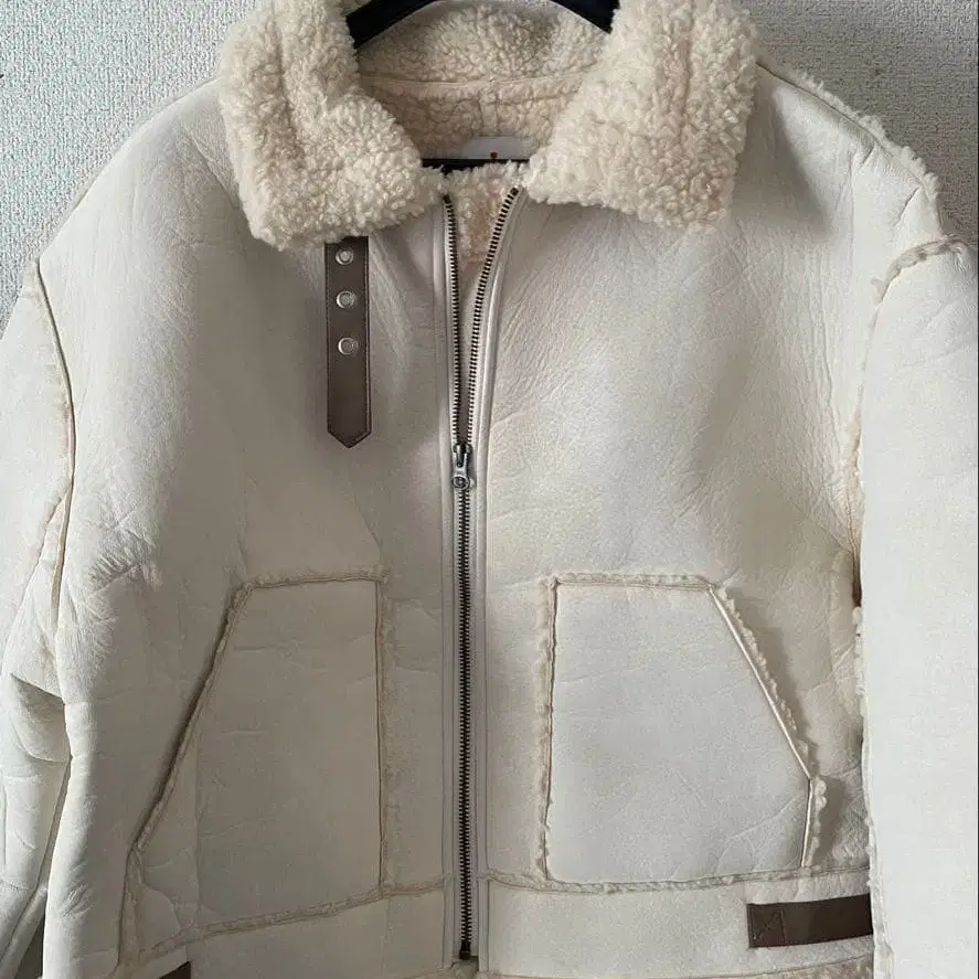 앙셰느망 퍼 무스탕 코트 화이트