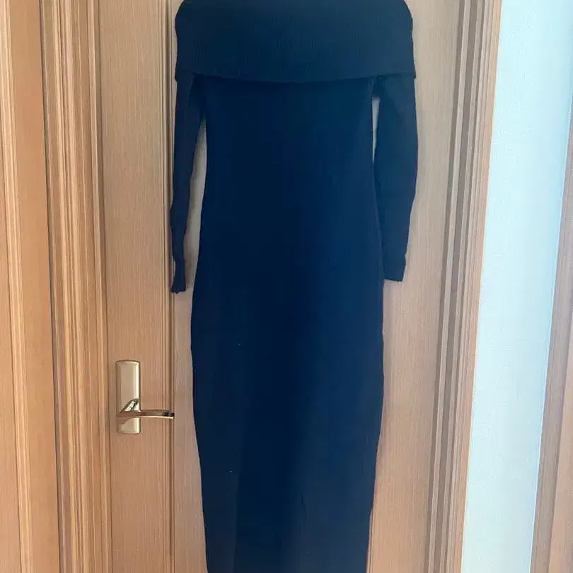 자동 번역되었어요. 원문보기심플한 블랙 롱 니트 원피스, M 사이즈, 긴팔 디자인. (오프숄더)