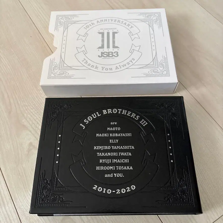 JSB3 10주년 기념, 멤버 사인 포함 특별판. - 모델명: JSB3 10th Anniversary - 사인: 멤버 사인 포함 - 패키지: 화이트 박스와 블랙 박스 세트 굿즈 정리로 판매합니다.