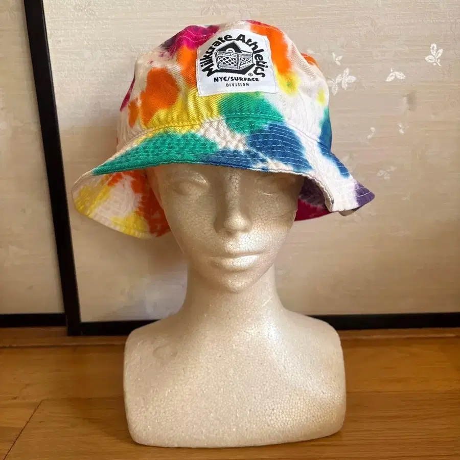 다색 타이 다이 디자인이 특징인 버킷 햇. 구제 의류이므로 이해하시는 분만 구매 부탁드립니다. 상태는 상당히 좋으며, 얼룩도 거의 없습니다. - 브랜드: Milkrate Athletics - 스타일: 버킷 햇 - 색상: 타이 다이 (다색) 방문해 주셔서 감사합니다.