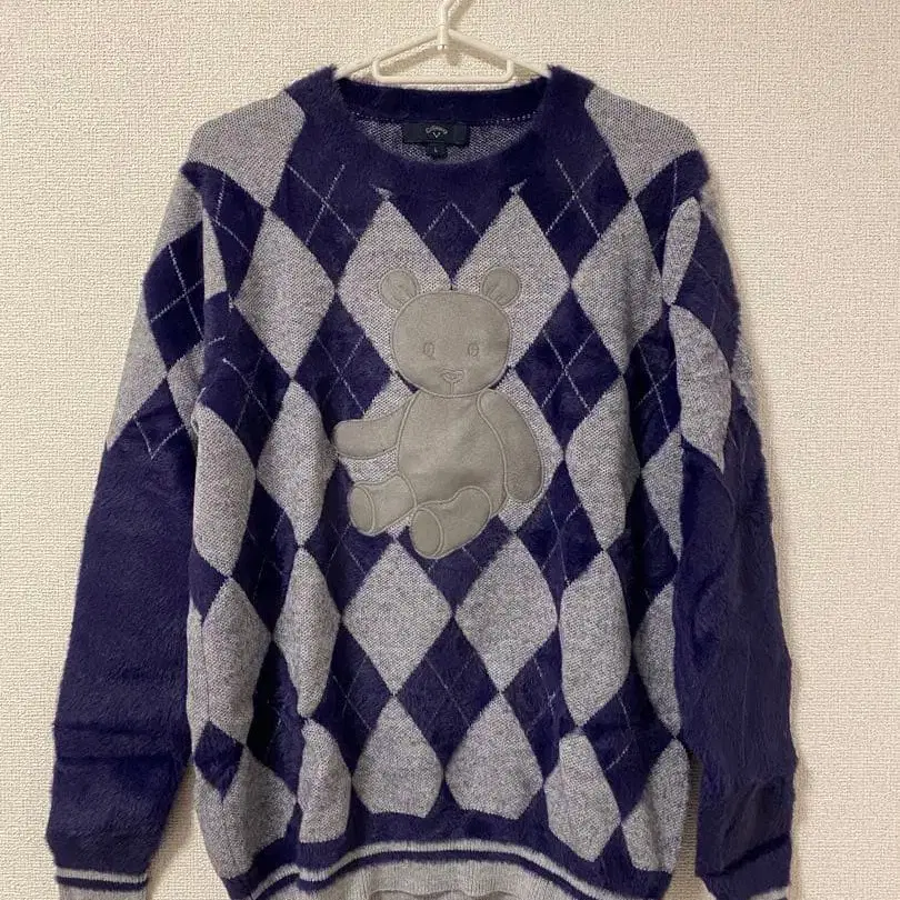아가일 무늬에 곰 무늬가 들어간 스웨터입니다.