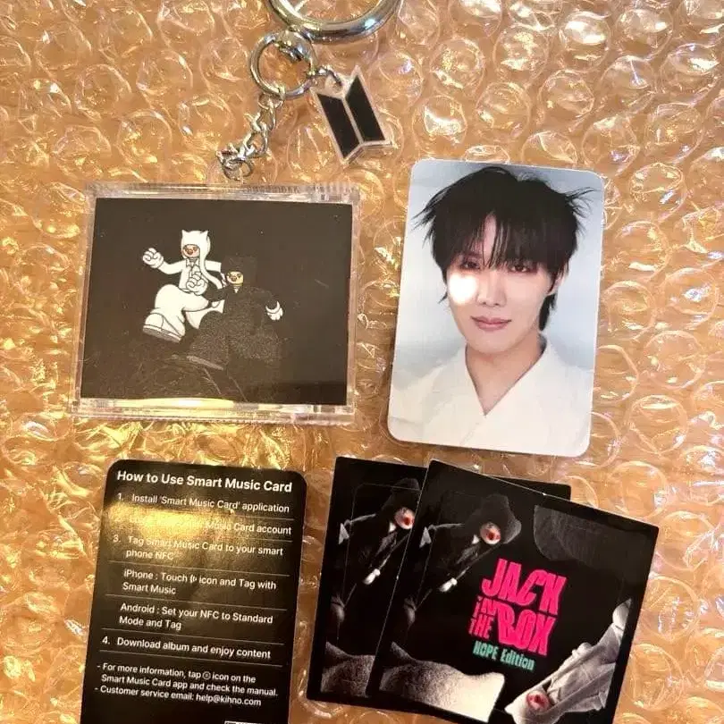투명 케이스에 담긴 키링과 스마트 뮤직 카드가 세트인 아이템으로, 앨범 다운로드 후에는 키링으로 사용하셔도 귀엽습니다.