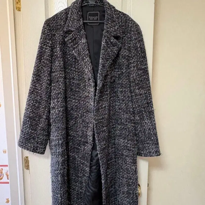 트위드풍 더블 롱 코트, 넉넉한 실루엣으로 스타일리시합니다. ※ 보풀이 있습니다. - 브랜드: Mademoiselle NON NON - 스타일: 롱 코트 - 소재: 트위드풍 - 특징: 넉넉한 실루엣 방문해 주셔서 감사합니다.