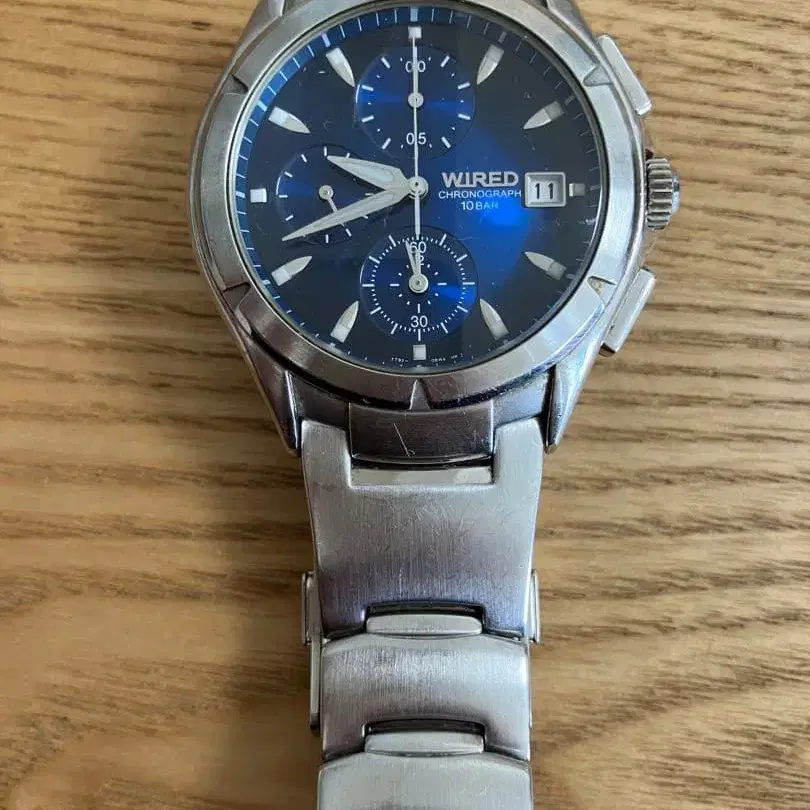 블루 다이얼과 크로노그래프 기능을 갖춘 WIRED 손목시계. [ 자체 품번 ] 165-502507050014 [ 상품명 ] 와이어드 WIRED 손목시계 워치 쿼츠 파랑 다이얼 로고 크로노그래프 달력 포함 실버색 7T92-0BX0 ■ GY18 /MQ [ 브랜드명 ] 와이어드 WIRED [ 표기 사이즈 ] 실측 사이즈를 참고해 주세요. [ 실측 사이즈 ] 밴드 폭: 약 1.7cm 팔 둘레: 약 18cm 케이스 세로: 약 36mm 케이스 가로 (크라운 제외): 약 36mm [ 소재 ] 스테인리스 스틸 [ 색상 ] 실버색 [ 사양 ] 10기압 방수 [ 상태 ] 방풍, 케이스, 벨트에 흠집이 있지만, 그 외 눈에 띄는 데미지는 없음. ※ 현재는 배터리 방전으로 작동하지 않는 상태입니다. 작동 미확인. ※ 어디까지나 중고품이므로 게재된 사진이나 기재 내용을 확인하시고, 이해하신 후 구매해 주세요. [ 부속품 ] 없음 [ 비고 ] 모델번호 7T92-0BX0 방문해 주셔서 감사합니다.