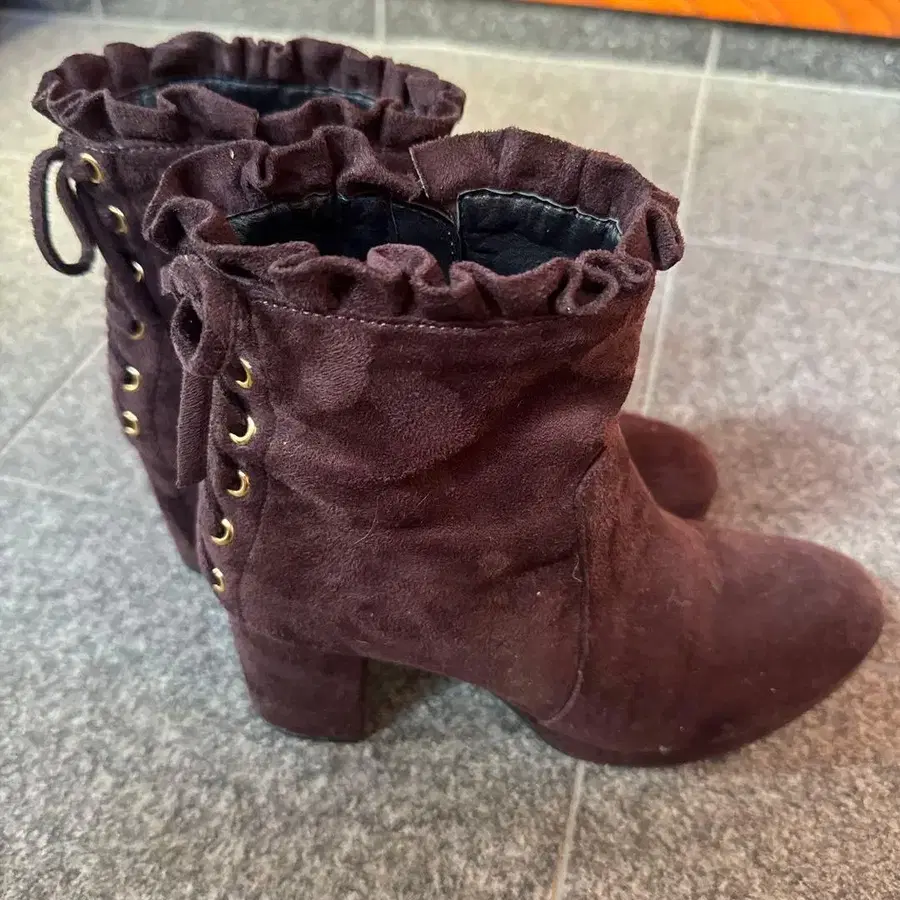 차분한 보르도 계열의 색감이라 귀여움뿐만 아니라 어른스러운 느낌도 있어 가을, 겨울 코디에 매우 잘 어울리는 한 켤레입니다.