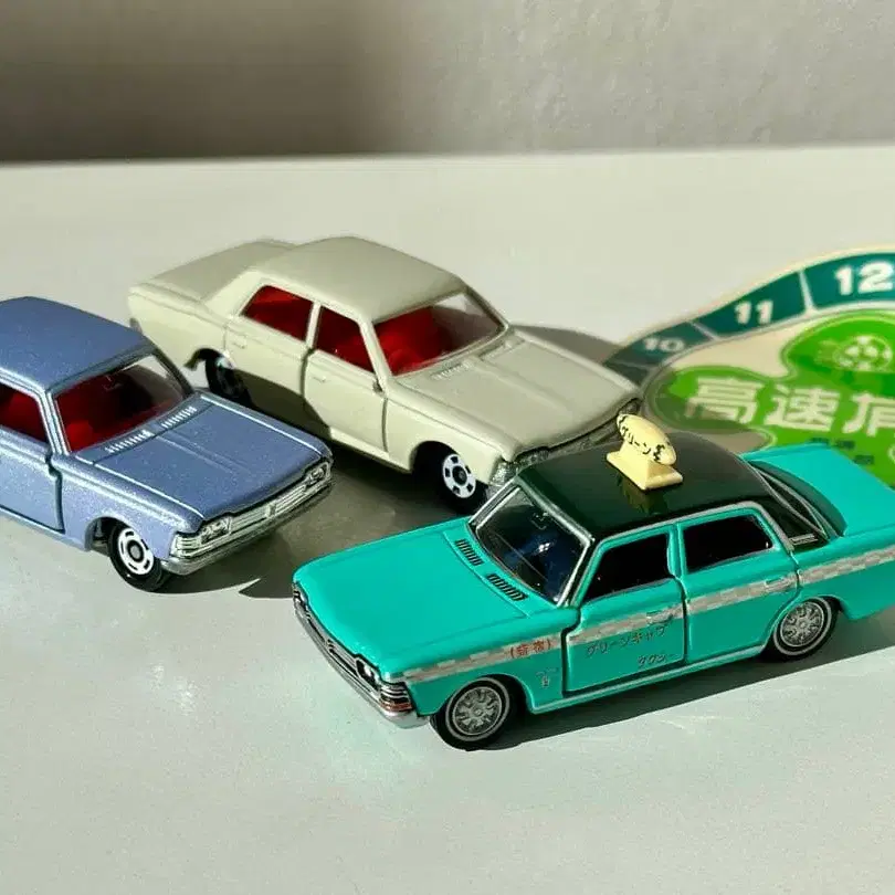 50 크라운 복각판 토미카 3대 세트입니다. 택시는 매우 디테일이 섬세하고 정교합니다. 어두운 곳에 보관했기 때문에 상태는 양호할 것으로 생각됩니다. 고속 유연 다이얼 스티커를 함께 드립니다. (스티커에는 구김이 있습니다)