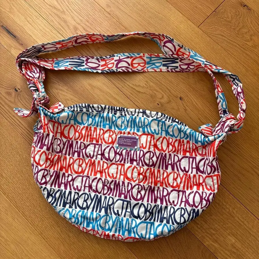 멀티 컬러 로고 프린트가 특징인 숄더백.