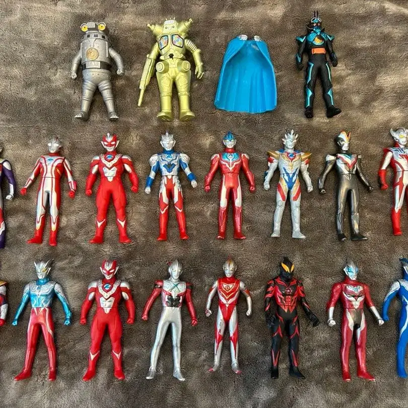 울트라맨과 괴수 소프트 비닐 인형입니다. 어린이가 가지고 놀던 것이므로 흠집이나 얼룩, 페인팅 벗겨짐 등 다수 있습니다. 새상품급이나 고품질을 원하시는 분은 삼가해 주십시오. 울트라맨에 대해 잘 몰라서 어떤 것인지 알 수 없습니다. 사진이 전부입니다. 19체 있습니다. 잘 부탁드립니다. 피규어 종류별 - 세트/묶음 판매
