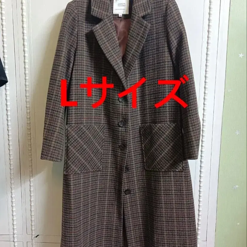 울 혼방 브라운 계열 체크 무늬 코트입니다.