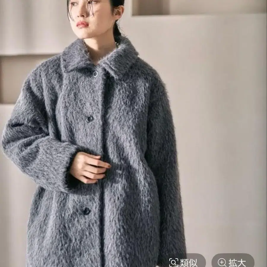 • hinari 스텐 컬러 샤기 미들 코트