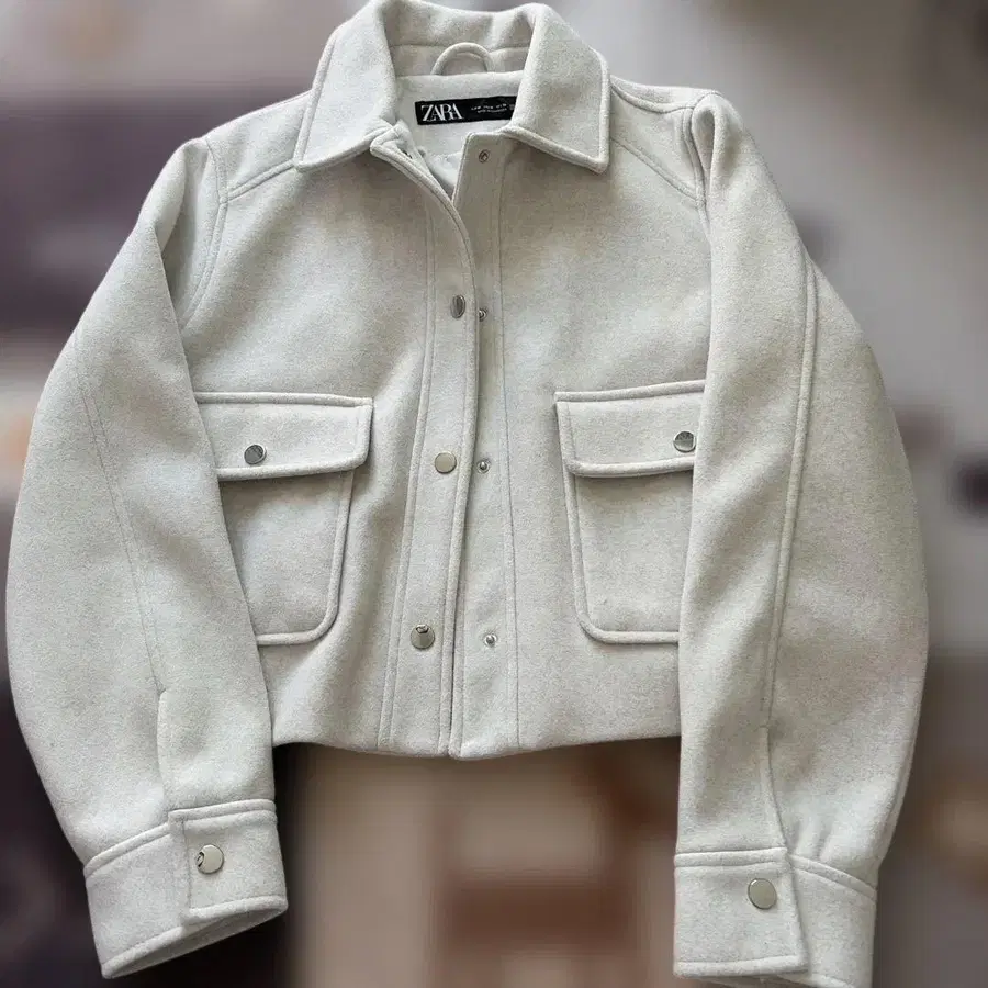 라이트 그레이 크롭 자켓, 플랩 포켓 2개 부착. - 브랜드: ZARA - 색상: 라이트 그레이 - 스타일: 크롭 자켓 - 포켓 수: 플랩 포켓 2개 방문해 주셔서 감사합니다. 사이즈 - M