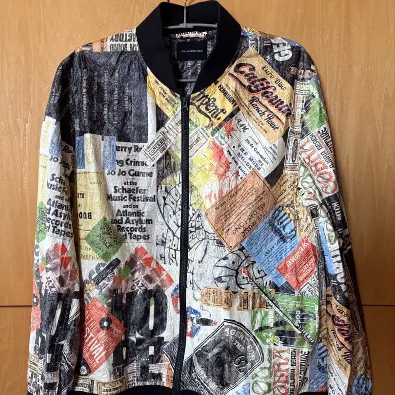 신문과 포스터 콜라주 디자인이 특징인 나일론 자켓. - 브랜드: CALIFORNIA RANCH HOUSE - 디자인: 신문과 포스터 콜라주풍 디자인 - 색상: 멀티 컬러 - 소재: 나일론 - 옷깃 디자인: 리브 옷깃 방문해 주셔서 감사합니다. 사이즈 - M