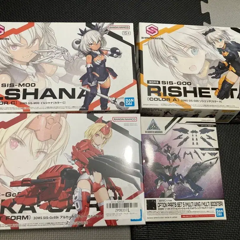 [세트 판매] 4종 세트 ○ 30MS SIS-Gc69r 아르카=카르테 (QUARTET FORM) ○ 30MS SIS-G00 리세타 컬러 A ○ 30MS SIS-M00 ILSHANA イルシャナ 컬러 C ○ 30MM 옵션 부품 세트 5 (멀티 윙/멀티 부스터) 모두 미조립입니다. 옵션 부품 세트와 아르카는 미개봉품입니다.