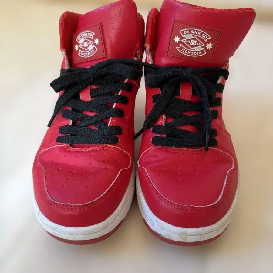 레드 색상의 가죽 하이컷 스니커즈, DC 로고 포함. - 브랜드: DC - 색상: 레드 - 스타일: 하이컷 - 로고: DC 로고 - 소재: 가죽 방문해 주셔서 감사합니다. 사이즈 - 24cm