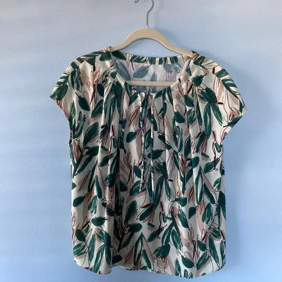 나뭇잎 패턴 프린트의 가벼운 반팔 블라우스. 자켓 안에 입어도 돋보입니다. - 디자인: 나뭇잎 패턴 프린트 - 색상: 화이트, 그린, 브라운 - 스타일: 반팔, 릴랙스 핏 - 소재: 가볍고 통기성 있는 원단 - 목둘레: 라운드넥, 끈 포함 방문해 주셔서 감사합니다. 계절 - 봄/여름