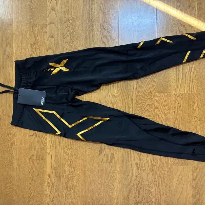 PWX 과학적으로 연구된 압축 시스템을 채용한, 블랙과 골드의 스타일리시한 롱 팬츠.
