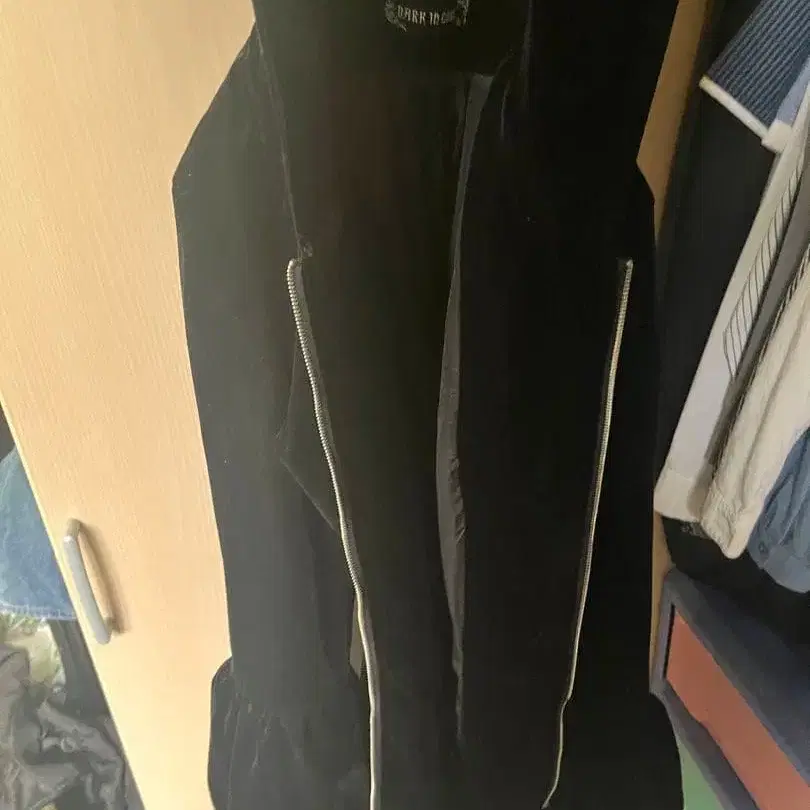 엘레강트한 벨 슬리브 디자인의 블랙 벨로아 롱 드레스입니다. 앞쪽 지퍼가 고장났습니다. 이해 부탁드립니다. - 색상: 블랙 - 디자인: 벨 슬리브 - 소재: 벨로아 - 지퍼: 프론트 지퍼 - 스타일: 롱 드레스 방문해 주셔서 감사합니다.
