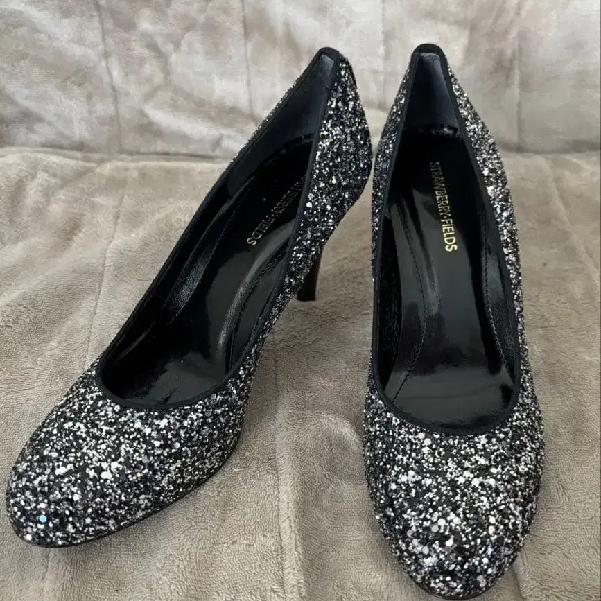 봐주셔서 감사합니다. STRAWBERRY FIELDS 스트로베리 필드 글리터 펌프스 라운드토 짧은 시간만 사용했습니다. 힐의 마모도 거의 없고, 밑창도 아주 깨끗합니다. 글리터가 반짝거려서 아주 귀여워요. 소재 특성상 라메가 떨어질 수 있습니다. 상태는 이미지로 확인해주세요. 사이즈: 23.5cm 힐 높이 약 8.5cm 색상: 실버 블랙 글리터 아래는 사이트 설명입니다. 심플한 디자인의 라운드토 펌프스로, 한눈에 시선을 사로잡는 화려한 글리터가 전체적으로 장식되어 있습니다. 둥근 발가락과 흐르는 듯한 사이드 라인, 깔끔하게 쉐이프된 힐이 어우러진 뛰어난 얕은 커팅이 발등을 넓어 보이게 하여 롱 레그 효과를 기대할 수 있습니다. 평소 사용부터 파티까지, 폭넓게 사용할 수 있습니다. STRAWBERRY FIELDS의 추천 상품입니다. - 스타일: 하이힐 펌프스 - 힐 높이: 중간 힐 - 소재: 글리터 마감 합성 소재 - 디자인: 라운드토 - 용도: 파티, 포멀, 포멀