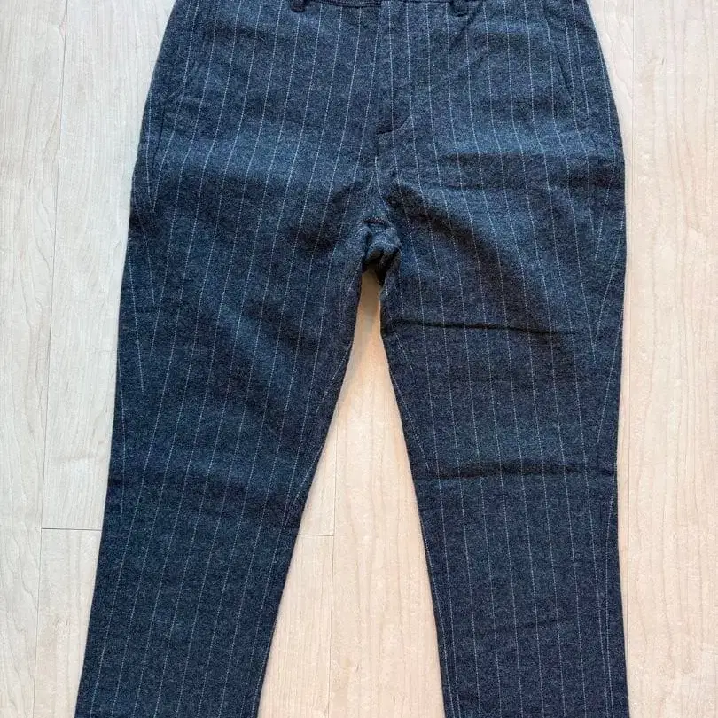 울 혼방 소재의 다크 그레이 스트라이프 크롭 팬츠. - 브랜드: APPLEBUM - 색상: 다크 그레이 - 디자인: 스트라이프 - 소재: 울 혼방 - 포켓: 백 포켓 있음 방문해 주셔서 감사합니다. 허리/힙/밑위/인심 허리 - 80cm 힙 - 52cm 밑위 - 28cm 인심 - 58cm 색상 - 그레이 계열 실루엣 - 크롭