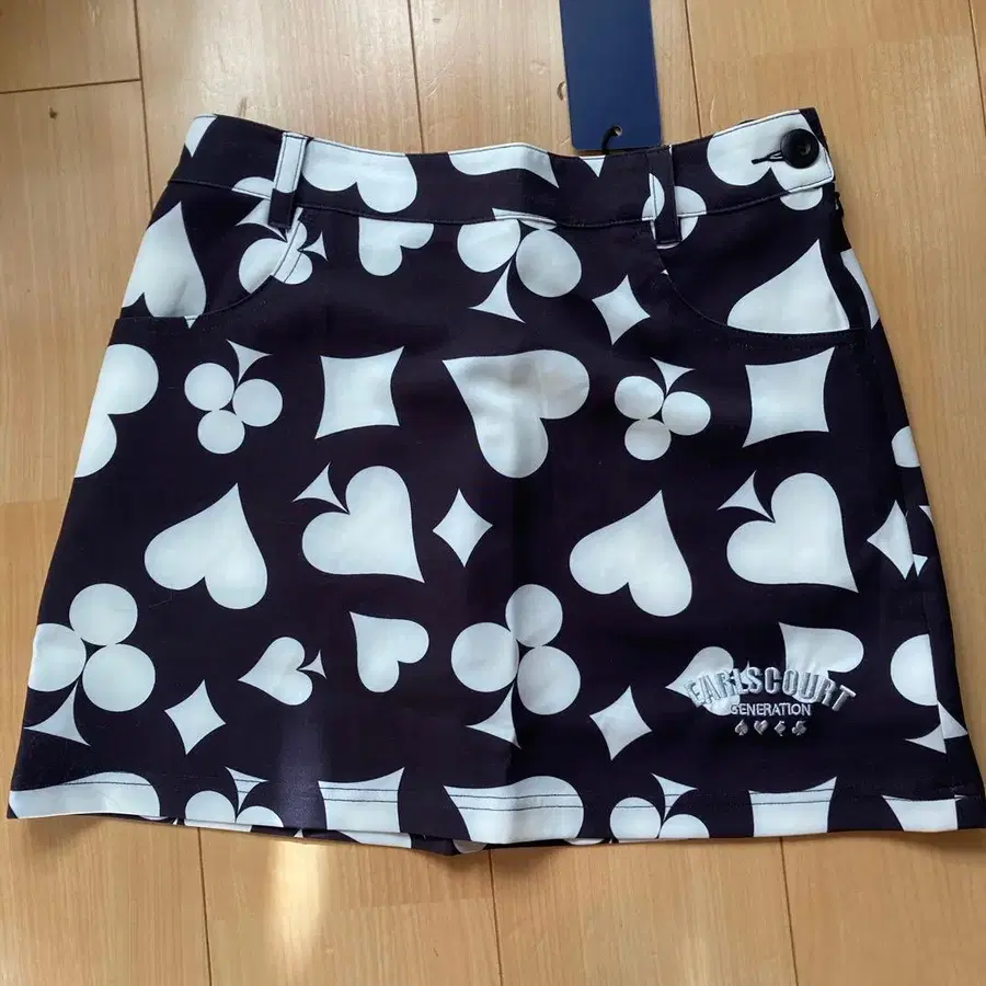 하트와 다이아 패턴이 특징인 골프웨어 스커트. - 브랜드: EARL'S COURT - 색상: 블랙 - 사이즈: S - 소재: 폴리에스테르 99%, 폴리우레탄 1% - 디자인: 하트와 다이아 패턴 - 장식: 자수 카드놀이 마크 방문해 주셔서 감사합니다.