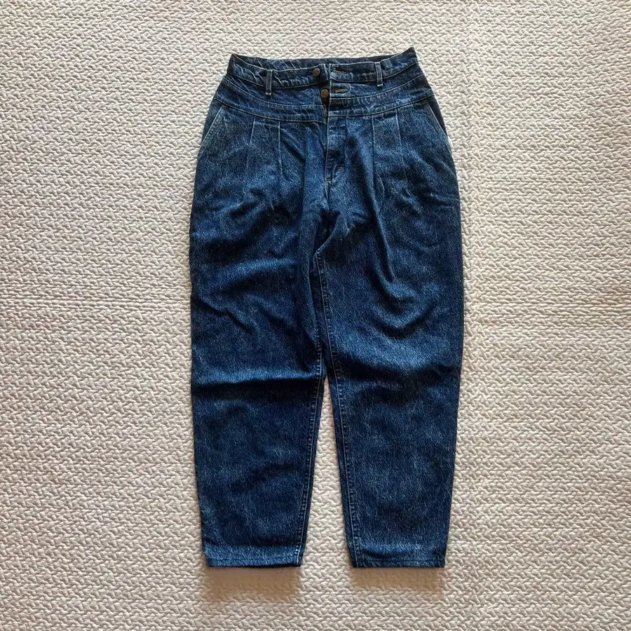 하이웨스트 디자인의 다크 블루 데님, 테이퍼드 스타일.