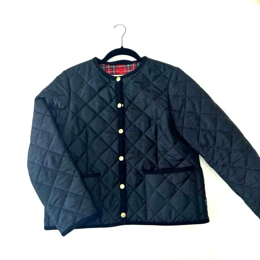 자동 번역되었어요. 원문보기Traditional Weather Wear 트래디셔널 웨더웨어 노카라 퀼팅 자켓 ARKLEY 아크리 블랙 골드 버튼 숏 기장