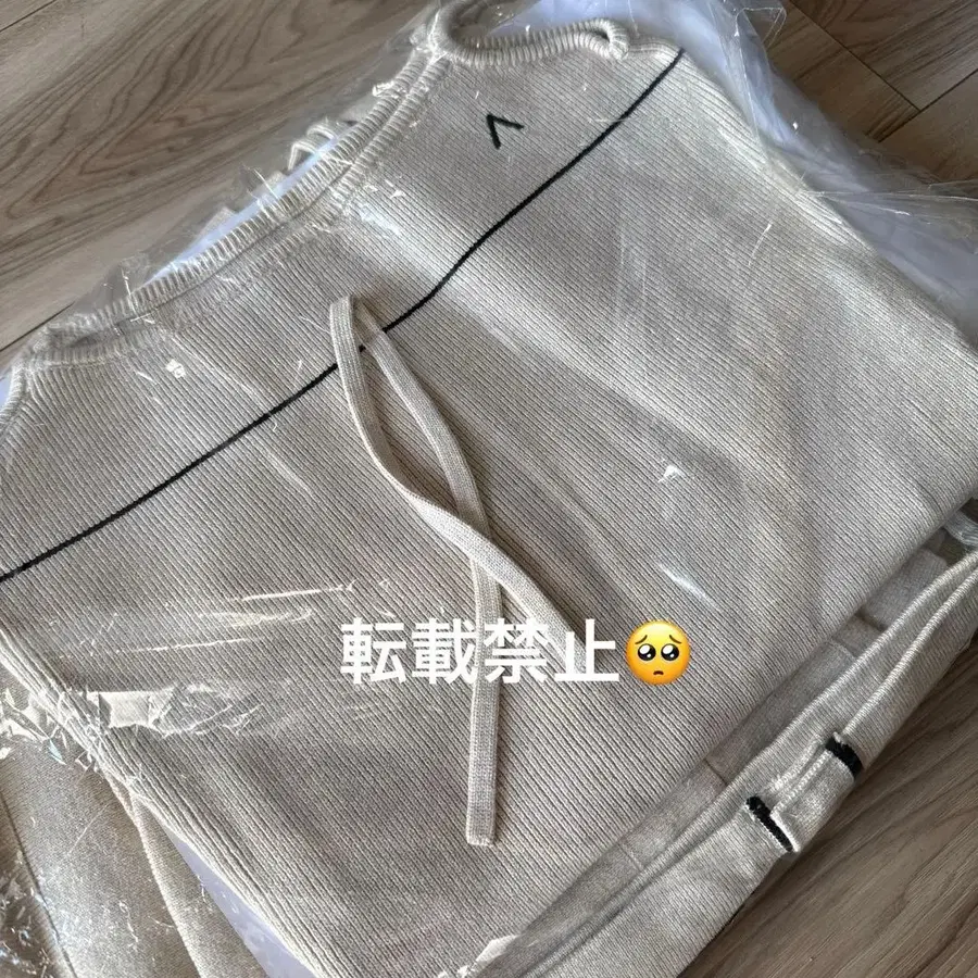 pinue 새상품 라인 니트 셋업 커스터드