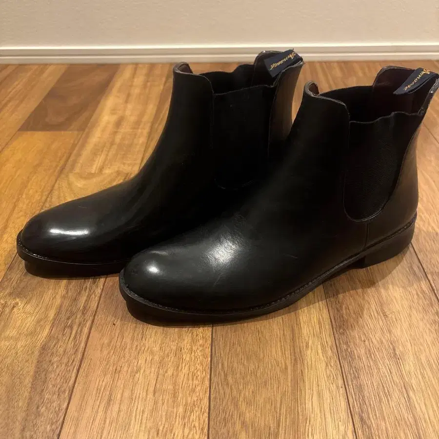 블랙 가죽 사이드 고어 부츠 레인부츠