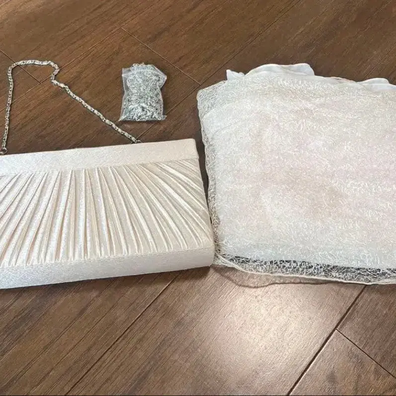 플리츠 디자인의 파티 백과 숄 세트입니다.
