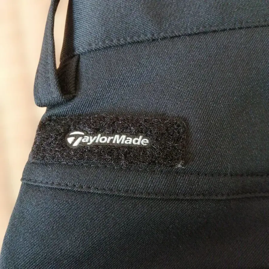 자동 번역되었어요. 원문보기블랙/검정에 가까운 네이비 색상의 TaylorMade 골프 팬츠, 화이트 파이핑으로 스타일리시함.