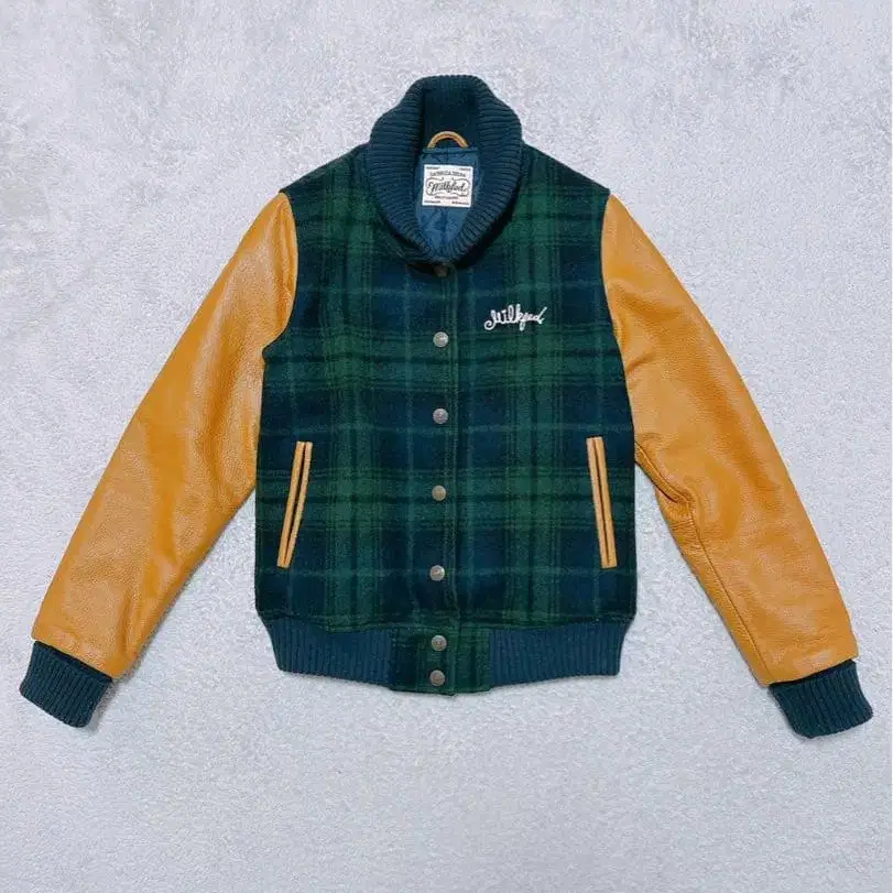 울과 가죽의 콤비네이션, 자수 로고 포함. 배색이 귀여운 체크 무늬 바시티 자켓. - 색상: 네이비, 그린, 카멜 - 소재: 울, 가죽 - 디자인: 체크 무늬, 바시티 자켓, 버튼식 - 안주머니: 있음 - 소매: 가죽 방문해 주셔서 감사합니다. 사이즈 - M