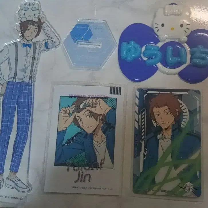 월드 트리거의 진 유이치 굿즈 묶음 판매입니다. 내용 산리오 콜라보 아크릴 스탠드 미니 브로마이드 제일복권 특전 카드 아크릴 스탠드는 어두운 곳에 장식해 두었습니다. 덤으로 퓨로랜드에서 만든 명찰도 함께 드립니다. 다른 판매 상품과 함께 구매하시면 할인도 해 드립니다. 월드 트리거 와토리 산리오 제일복권 진 유이치 다니엘