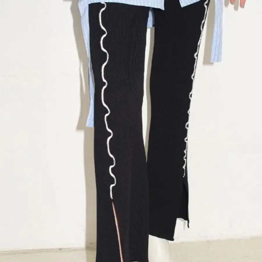 스도크의 스테디셀러인 리브 팬츠입니다. 슬릿 덕분에 다리가 길어 보입니다. 164cm인 제가 착용했을 때, 사진 속 모델과 비슷한 길이였습니다. 컬러 양말과 함께 자주 착용했습니다. 매끈한 원단의 니트 소재라 한여름을 제외하고는 착용 가능할 것 같습니다. 마음에 들어 자주 입었기 때문에, 밑단 안쪽에 보풀과 제품 택에 데미지가 있습니다. 인심 68.5cm 슬릿 16cm