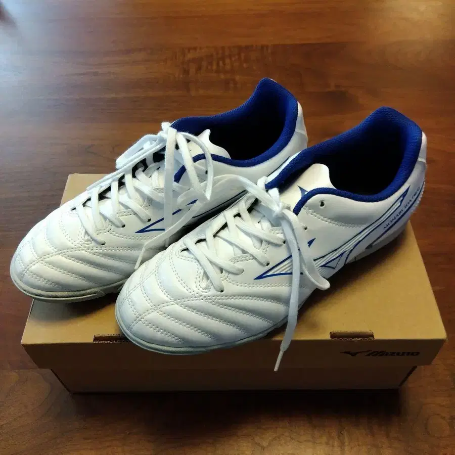 트레이닝화 한 번 신어봤습니다. 화이트와 블루 색상의 Mizuno Monarcida Neo, 인조잔디용 밑창으로 쾌적한 플레이를 서포트합니다. - 브랜드: Mizuno - 모델명: Monarcida Neo - 색상: 화이트/블루 - 밑창 타입: 인조잔디용 방문해 주셔서 감사합니다.